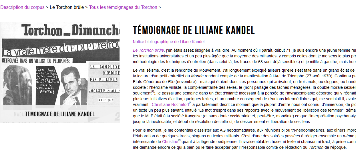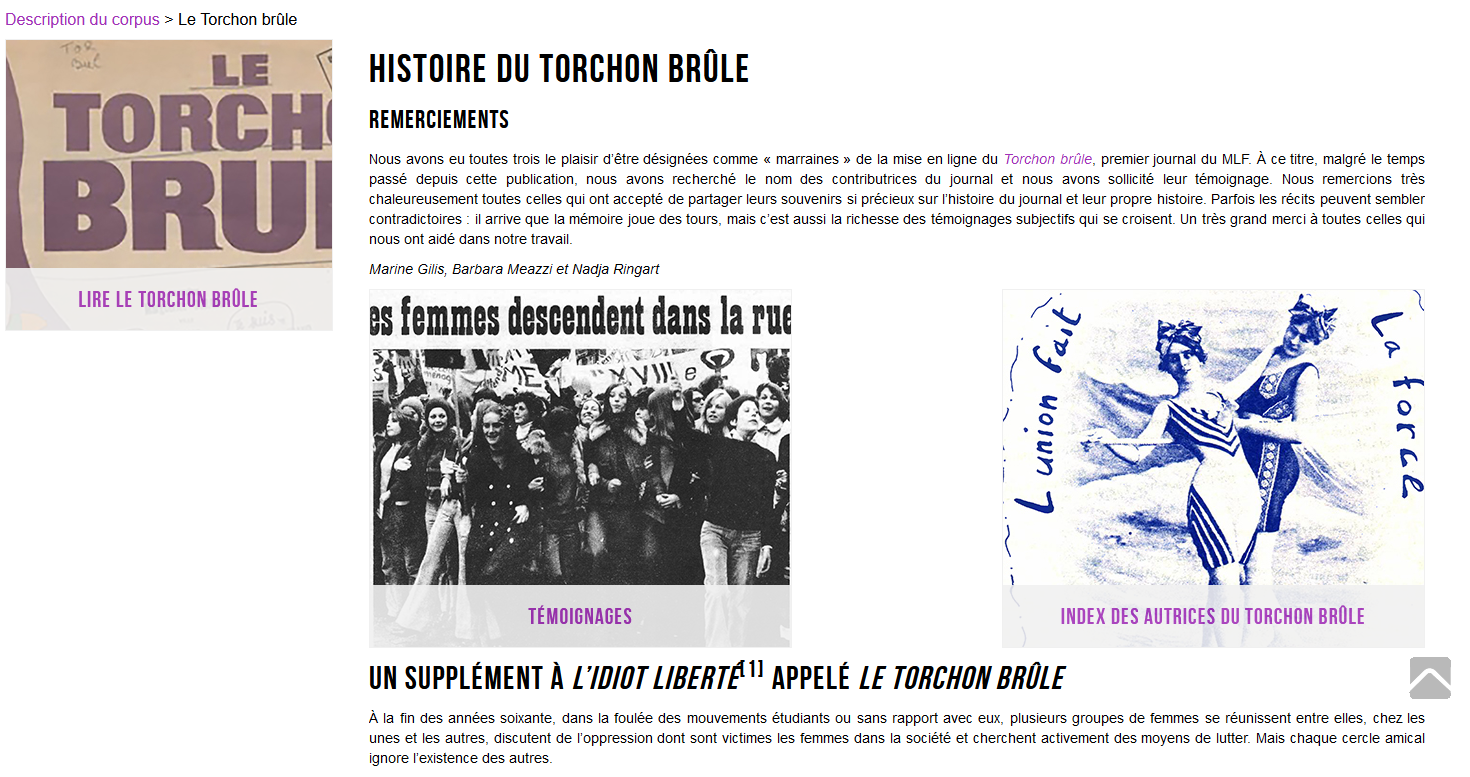 Finalisation de la page d'introduction "Histoire du Torchon brûle" :