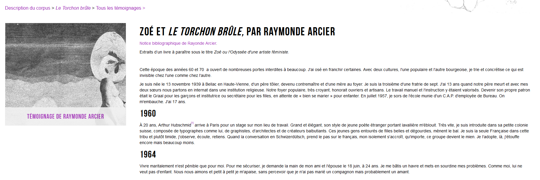 1) Mise en ligne du témoignage de Raymonde Arcier :