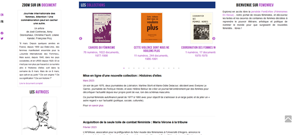 - Les boites « Zoom » et « Les autrices » et « Bienvenue » ont été déplacées au même niveau que le menu défilant « Les collections », de chaque côté.