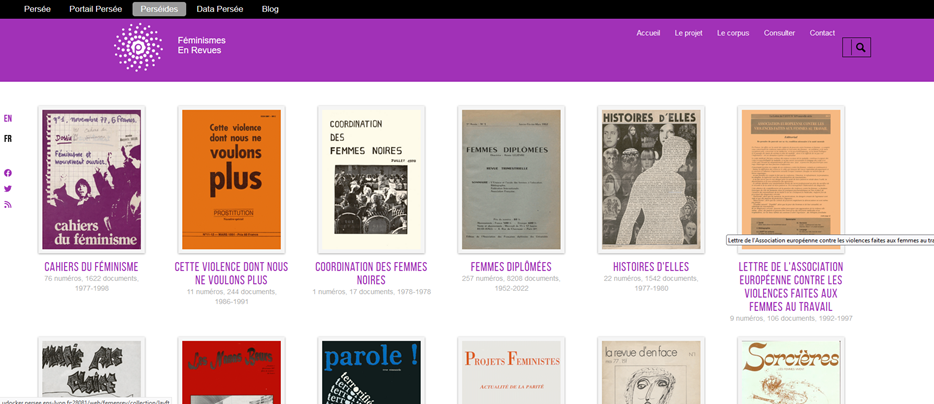 Figure 3 : Les images de couverture on un bord blanc avec une ombre portée, effet devant derrière, pour plus de matérialité sur les revues.